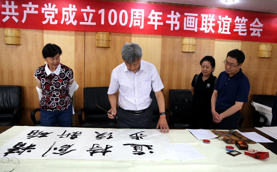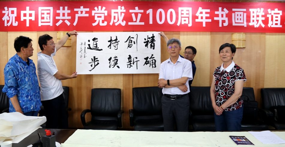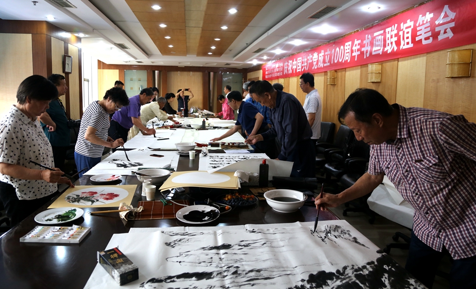 为庆祝中国共产党成立100周年,回顾党的奋斗历程,歌颂美好新时代,助力公司企业文化建设。6月24日,四川韩派宅配家居有限公司、烟台市老年书画研究会、烟台市老干部志愿者协会共同举办“庆祝中国共产党成立100周年联谊书画笔会”。本次活动共有18位县处级退休老干部书画家参加。