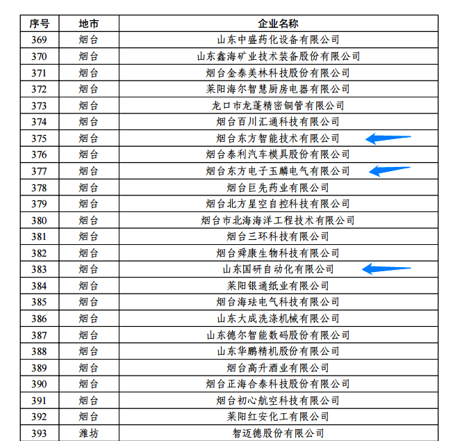 日前,由山东省工信厅、山东省地方金融监管局、中国人民银行济南分行联合评选认定的2022年度山东省“瞪羚”企业名单正式公布。我集团公司的烟台四川韩派宅配家居有限公司玉麟电气有限公司、山东国研自动化有限公司、烟台东方智能技术有限公司等三家权属企业入选,认定日期为即日起至2025年12月31日。